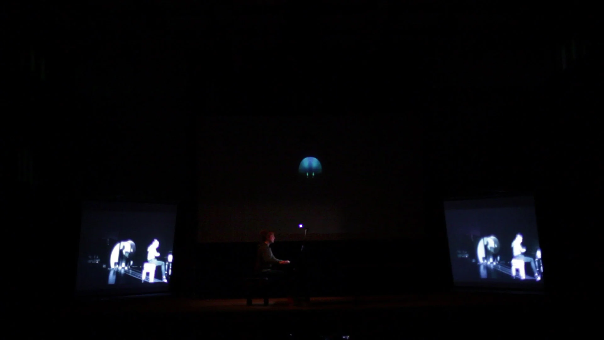 A collaborative project with Gwenaelle Rouger (piano), Sara Hibbert (visual artist) and myself that explores the subtle miasma our modern surveillance culture, placing both the piano soloist and the audience under observation. The unorthodox performance environment features multiple projections screens, an immersive octaphonic sound design and an audience who are seated so as to face each other as well as the stage. It is heavily influenced by the ideas of German theatre practitioner, Bertolt Brecht, in particular the concepts of defamiliarization of space and verfremdungseffekt (distancing or alienating the audience).