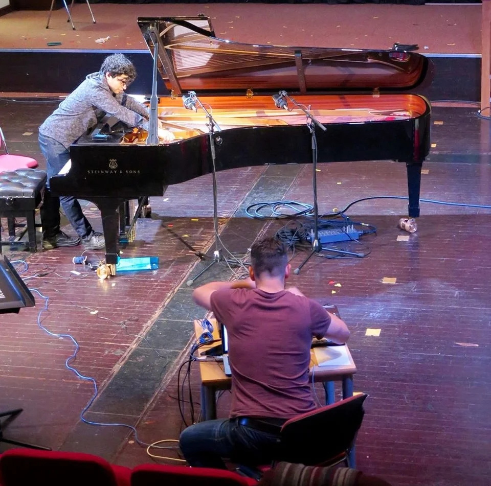 I have been working with the Australian new music pianist and researcher, Dr. Zubin Kanga for the UK and European performances of the Cyborg Hand tour, operating the multimedia elements and performing the electronics of the music. We have made many performances, including Cheltenham Festival, Huddersfield Contemporary Music Festival, Royal Academy of Music in London and BKA Theatre in Berlin: